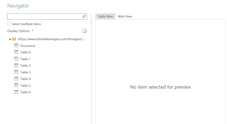 Tables scraped from the website
