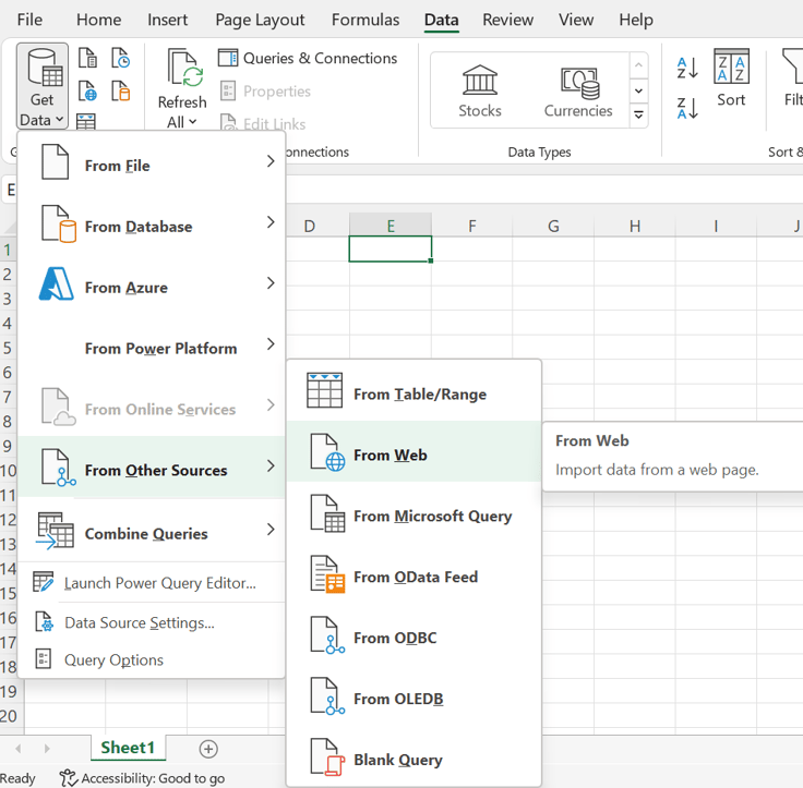 Scrape data with web queries