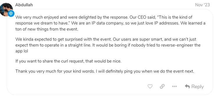 As a disclaimer, the IPinfo team was expecting the app to get reverse engineered and were actually quite happy to learn how people found creative solutions around the blocks.
