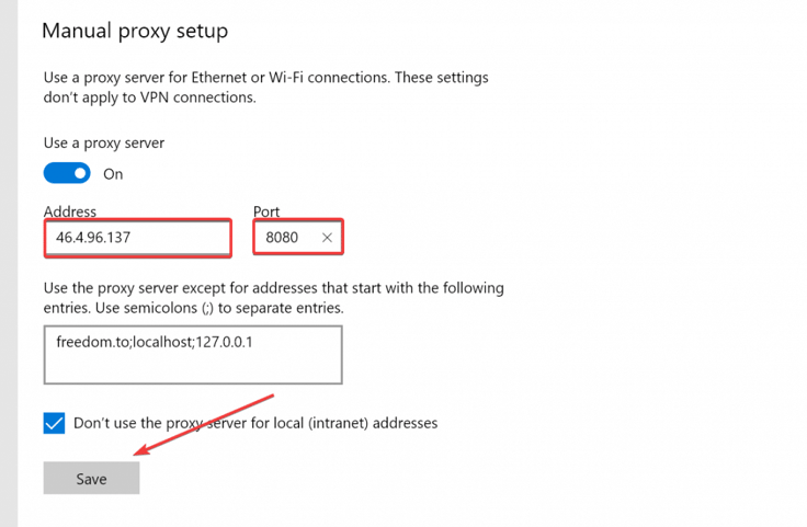 • Now all the programs on your windows device will start using the proxy server until you disable it again.