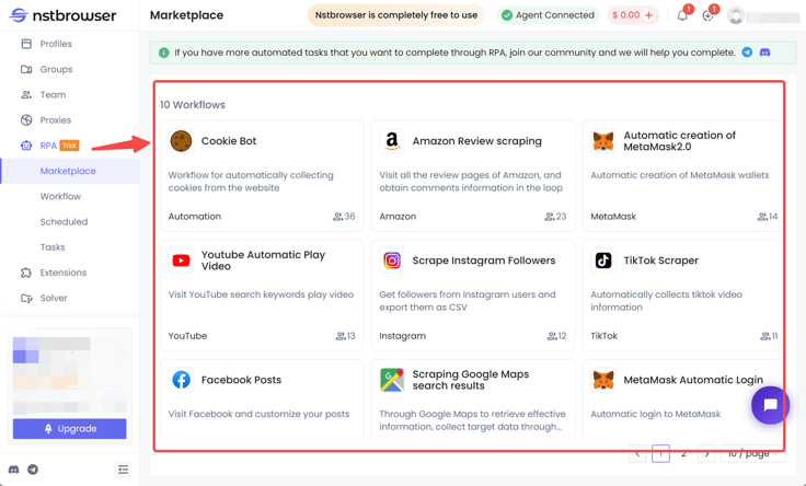 Automating daily tasks in Nstbrowser is easy and fast using our carefully developed RPA bots for free. You can create any automated process as needed or use ready-made templates. Here you can learn how to manage multiple accounts with the help of Nstbrowser RPA.