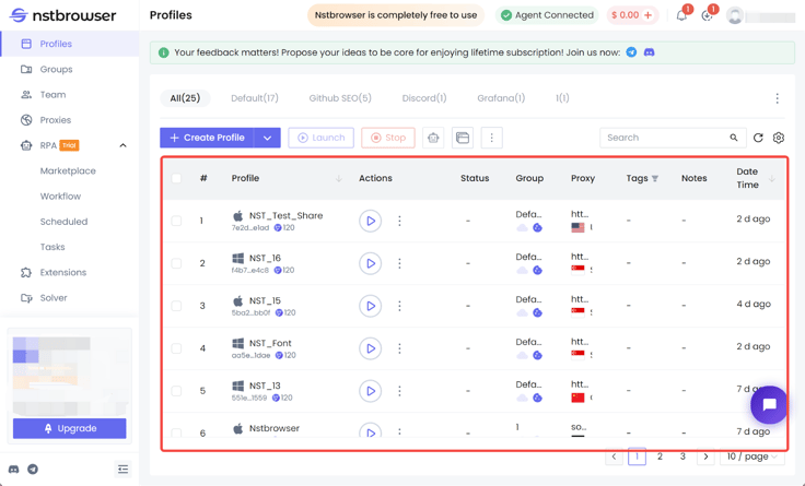 Nstbrowser creates authentic browser fingerprints and is even compatible with Windows, Mac, and Linux systems. We also offer browser kernels based on Chrome and Firefox for greater account undetectability. In addition, Nstbrowser's ability to automate rotating proxy allows you to determine the most effective proxy for a specific target, reducing the chances of your activity being tracked or blocked.