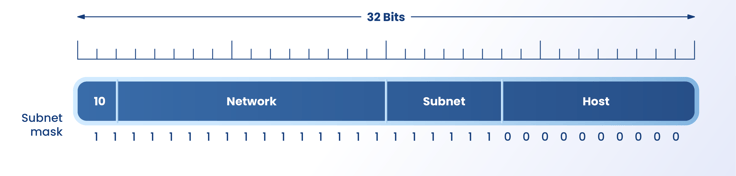 | B | 65,534 | 11111111 11111111 00000000 00000000 | 255.255.0.0 |