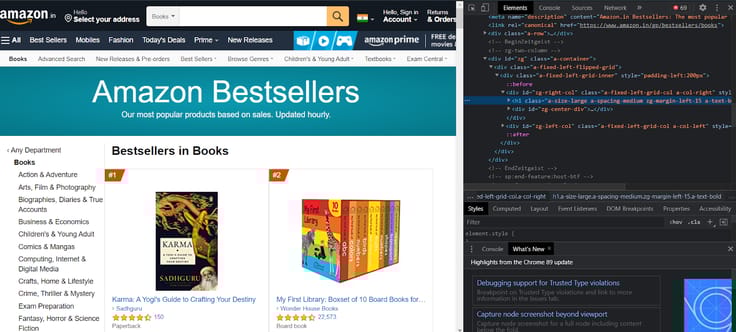 Now we will scrape the useful information from the Amazon best-selling books. The URL we are going is to scrape is: