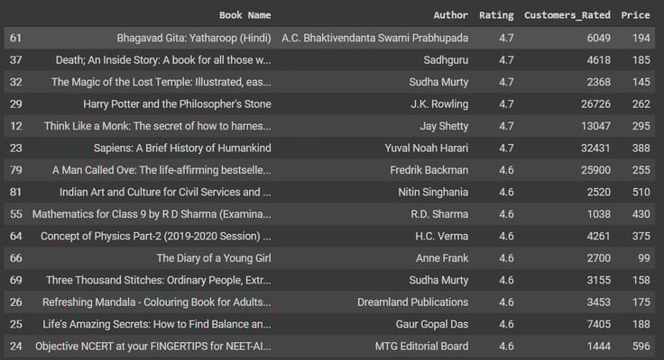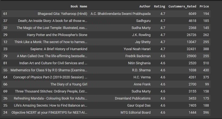 df = pd.DataFrame(flatten(results),columns=['Book Name','Author','Rating','Customers_Rated', 'Price'])