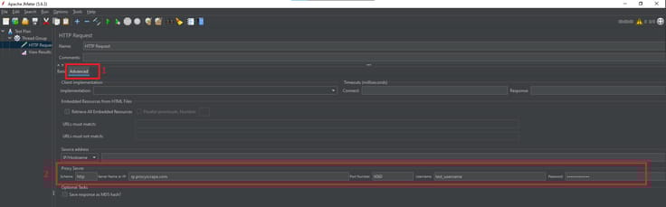 Now is time to implement a proxy server. For this example, we'll use our residential proxies.So we go to "Advanced" tab then we will the proxy information that is required. In this case we fill schema to "http".Server Name or IP to server name or ip of the proxy providerPort number to the proxy IP's port numberUsername and password fields. If you are using proxies that do not require username and password authentication, you can leave these fields blank.