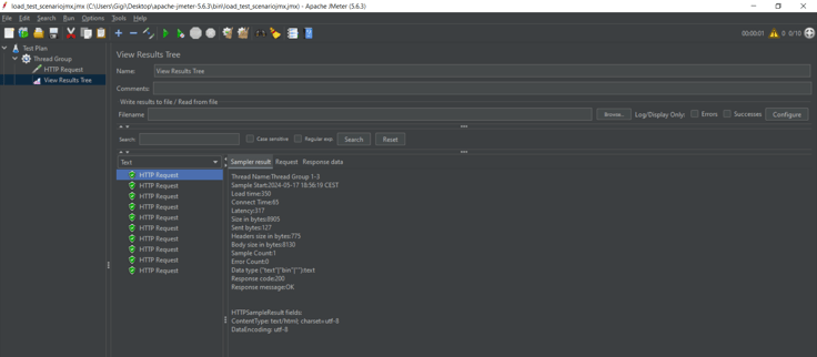 The results of each request will be displayed in the "View Results Tree" listener.